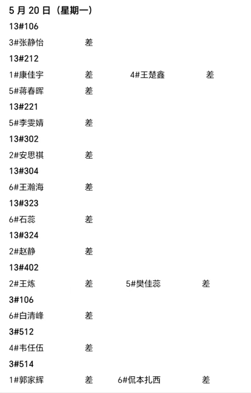 澳门pg官方电子平台2023——2024年度第二学期第十三周通报批评