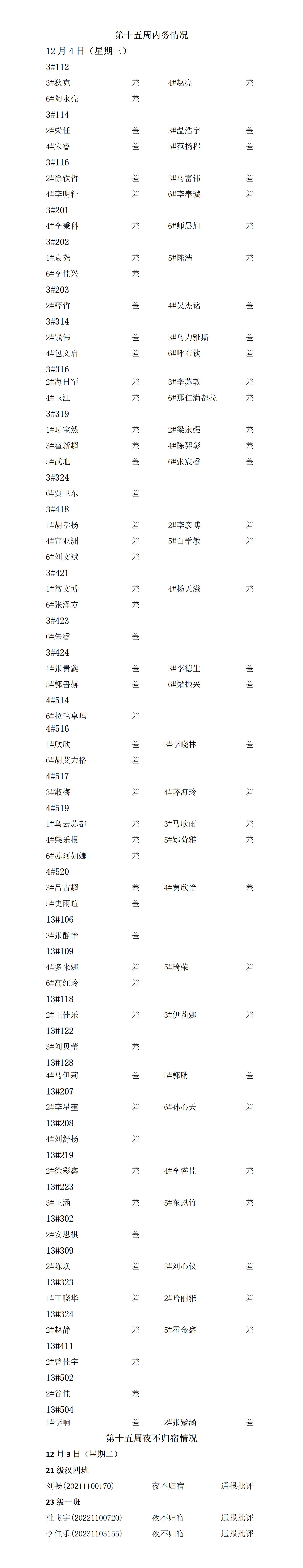 澳门pg官方电子平台2024——2025年度第一学期第十五周通报情况
