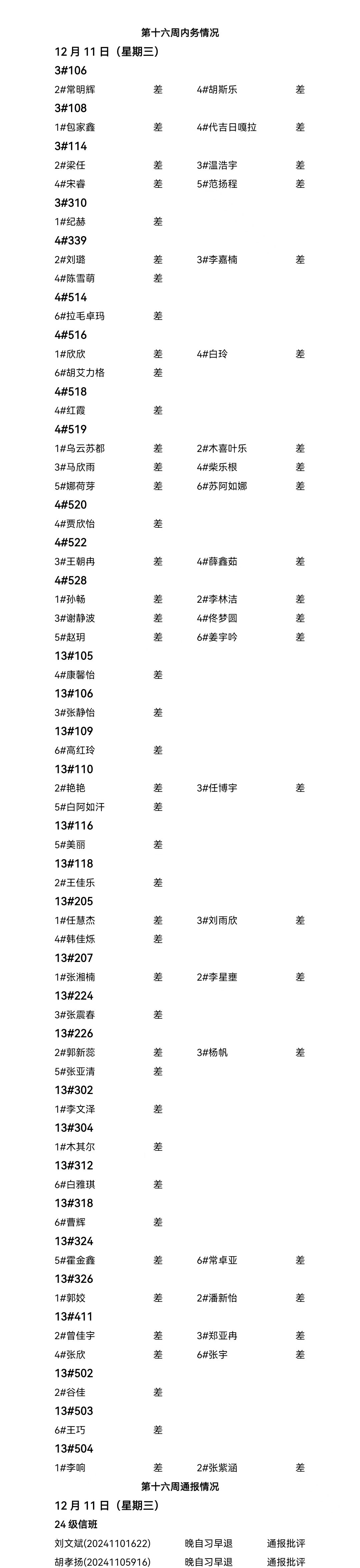 澳门pg官方电子平台2024——2025年度第一学期第十六周通报情况