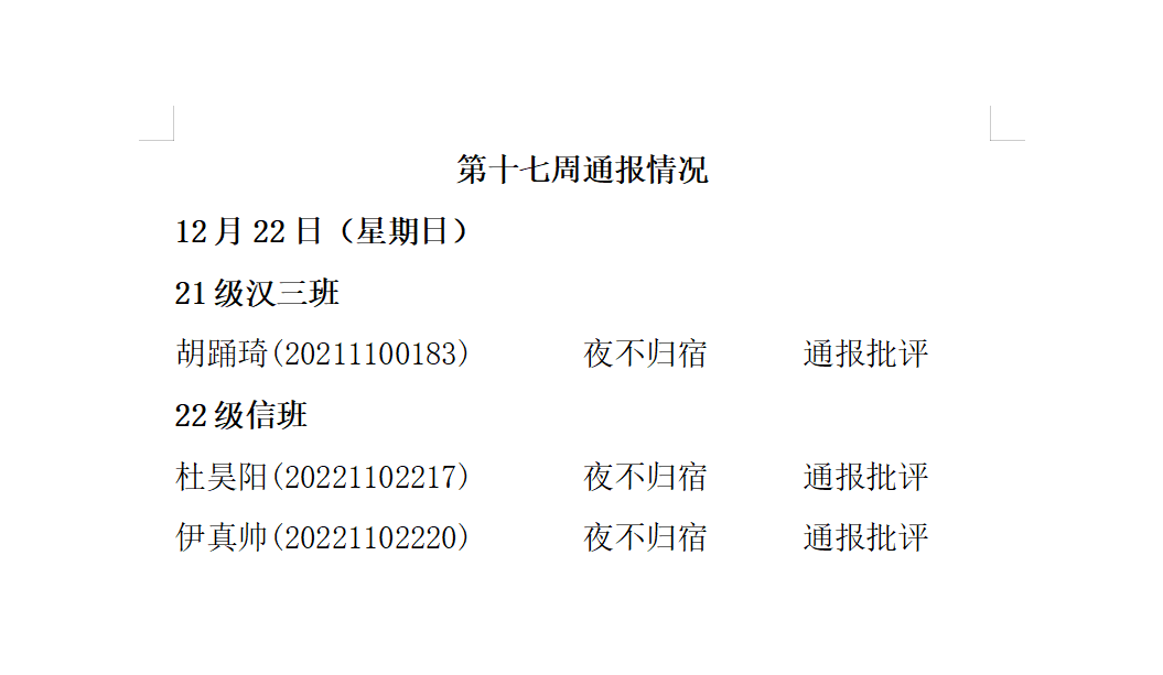 澳门pg官方电子平台2024——2025年度第一学期第十七周通报情况