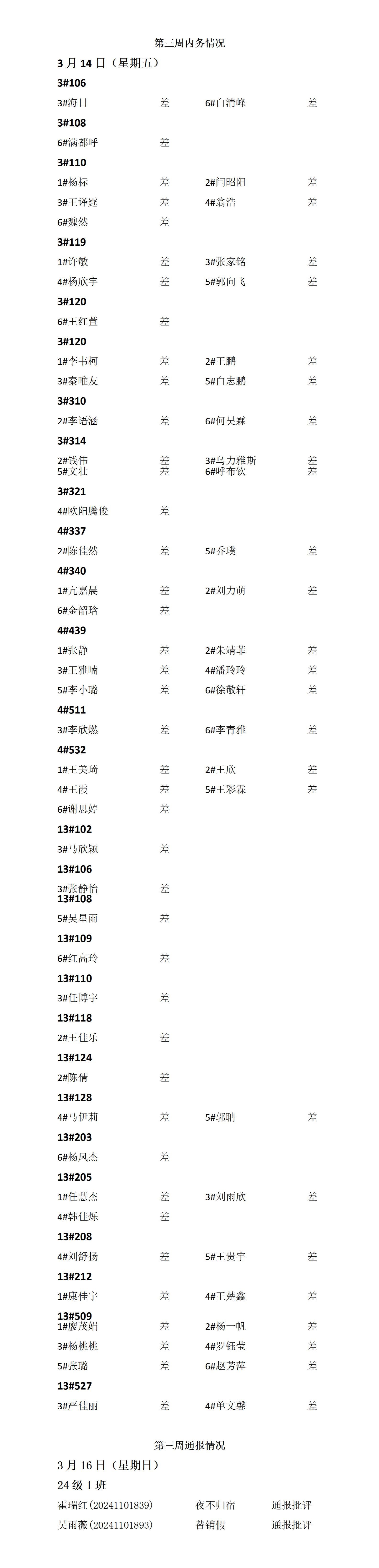 澳门pg官方电子平台2024——2025年度第二学期第三周通报情况