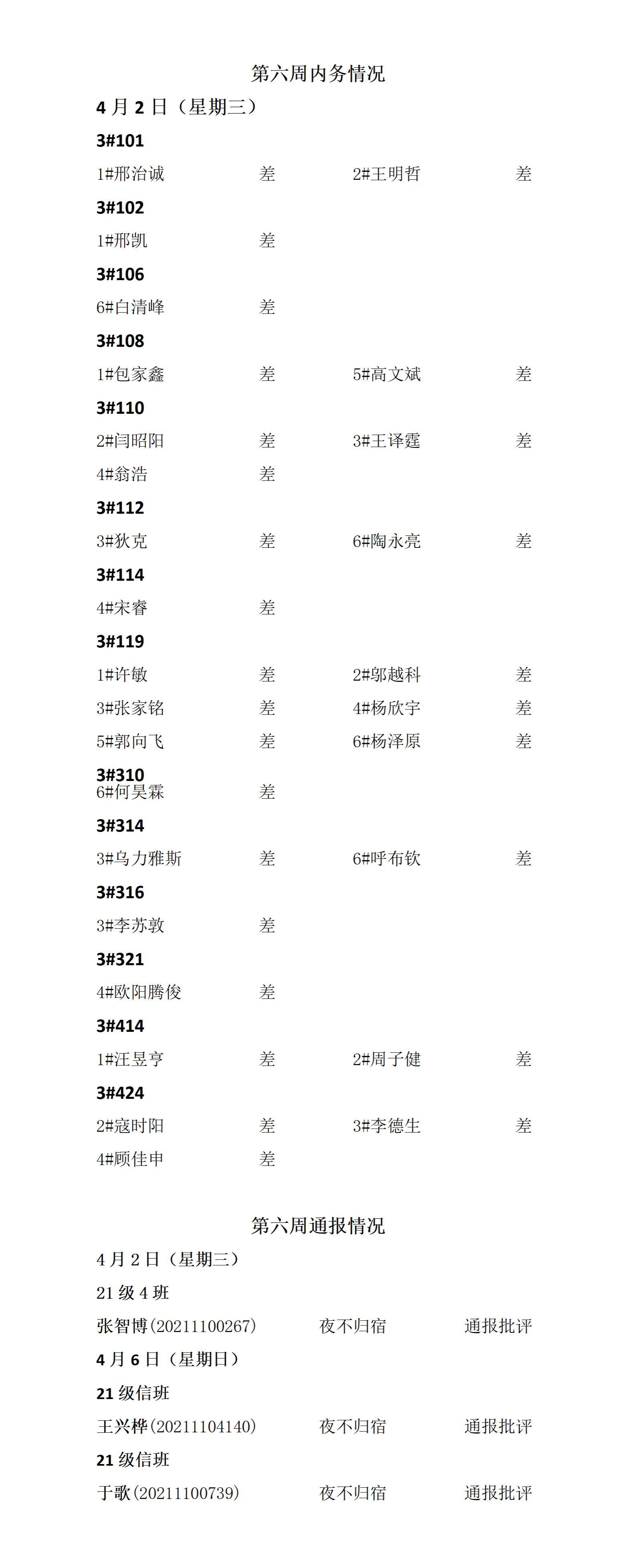 澳门pg官方电子平台2024——2025年度第二学期第六周通报情况