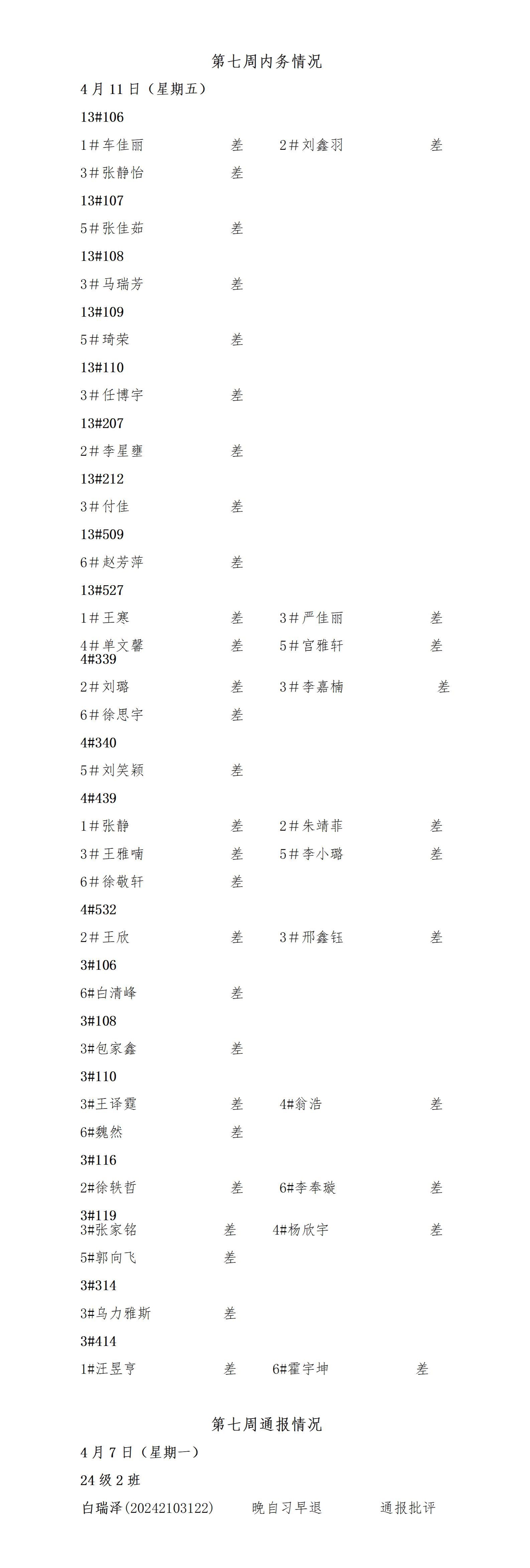 澳门pg官方电子平台2024——2025年度第二学期第七周通报情况