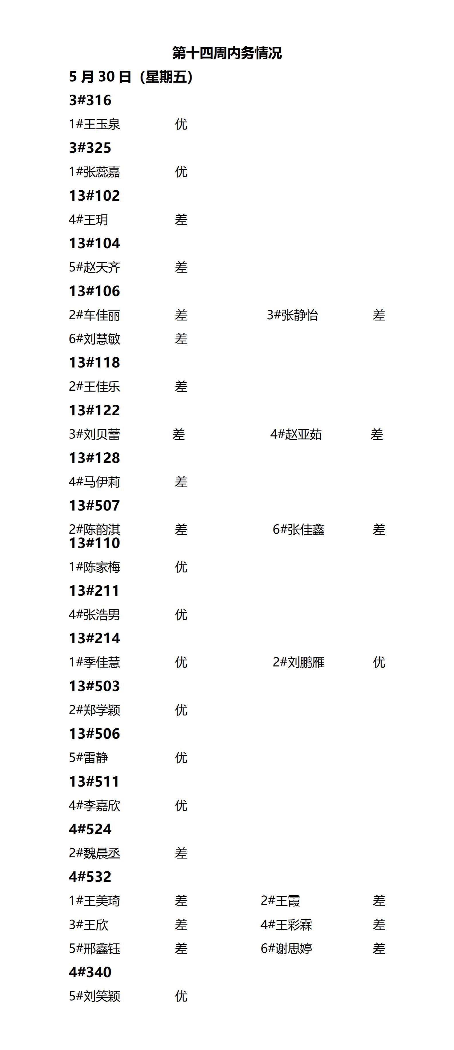 澳门pg官方电子平台2024——2025年度第二学期第十四周通报情况