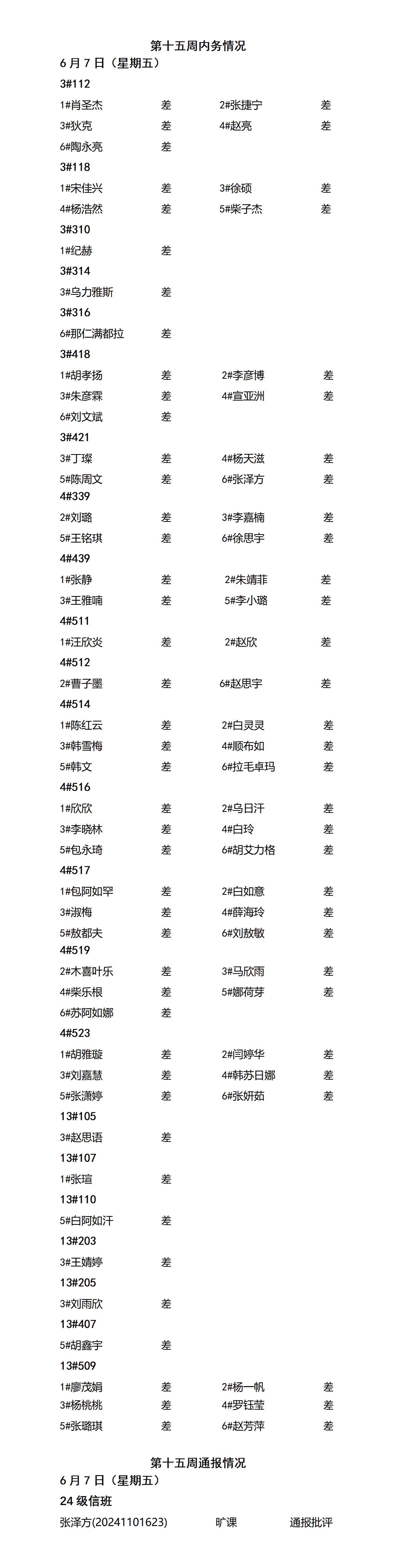 澳门pg官方电子平台2024——2025年度第二学期第十五周通报情况