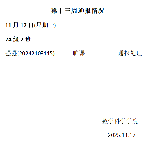 澳门pg官方电子平台2025——2026年度第一学期第十三周通报情况