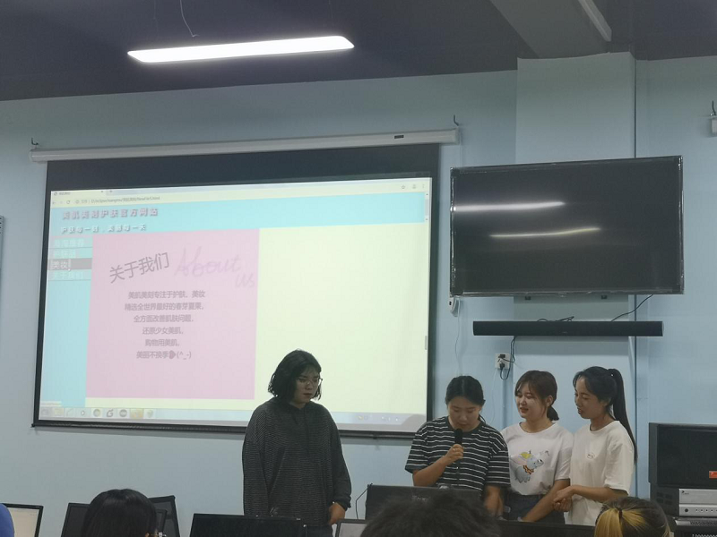 实习结束前会分好小组,每组都需要根据一周所学做出一个项目,进行答辩,答辩期间每位同学需要在期间说出哪些功能和想法是自己想到并实施出来的,尽管时间较短,但答辩期间很多学生做出的网页都非常具有创意,其中一些身在学生会的同学做了澳门pg官方电子平台学风建设部系统,他们认为有了这样的系统能够更加方便今后的学生会管理工作,有的同学针对自己喜欢的东西也分别设计出了相应的网页,例如球鞋官网,化妆品网站,班级网站……