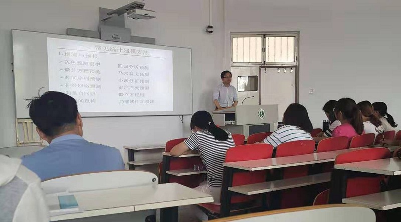 2019 年全国大学生数学建模竞赛即将开赛,为进一步提高我校参赛学生的建模能力与写作能力,澳门pg官网于 2019 年 7 月16-18 日,特邀西安交通大学数学与统计学院周义仓教授和天津工业大学汪晓银教授在田家炳教育书院楼七共,给澳门pg官网数学建模指导教师和我校部分参赛学生作了精彩讲座。