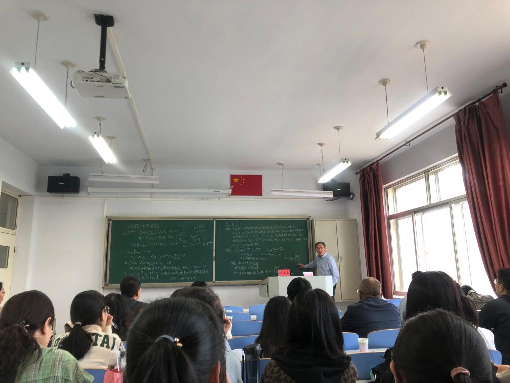 5月17日下午3点,澳门pg官方电子平台在赛罕校区田楼220教室举办了迎校庆70周年暨数学与应用数学国家一流专业建设点系列讲座。特邀请厦门大学陈景润数学特聘教授、博士生导师林亚南作了题为“从矩阵的乘法谈起”的报告。参加本次讲座的有我校党委副书记、校长阿拉坦仓,学院党委书记、院长扎其劳以及部分青年教师、研究生和本科生代表。报告由澳门pg官网副院长包霞主持。