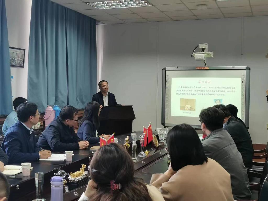 刘子忠书记从实验室的成立背景、研究团队、研究方向、工作站建设情况等方面为我们详细介绍了内蒙古自治区绿色催化重点实验室。环境化学系主任焦燕从实验室的人员结构、职称结构、专业方向、实验室定位、人才的培养以及取得的成果等方面详细的介绍了内蒙古自治区化学环境重点实验室。徐爱菊教授介绍了内蒙古自治区绿色催化重点实验室的实验室主任和学术带头人。特别地,为我们详细介绍了取得的一系列成果并展示了每年取得成果的册子。