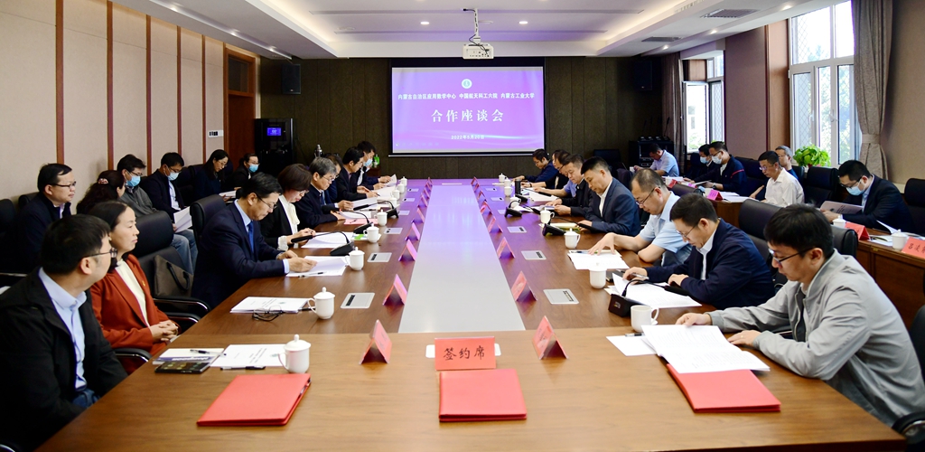会上,中国航天六院副院长贾永刚,内蒙古工业大学副校长宝音贺西,内蒙古自治区应用数学中心主任、我校党委书记阿拉坦仓分别致辞,均表示将积极发挥各自专业优势和人才优势,整合资源,全力支持三方合作研究。