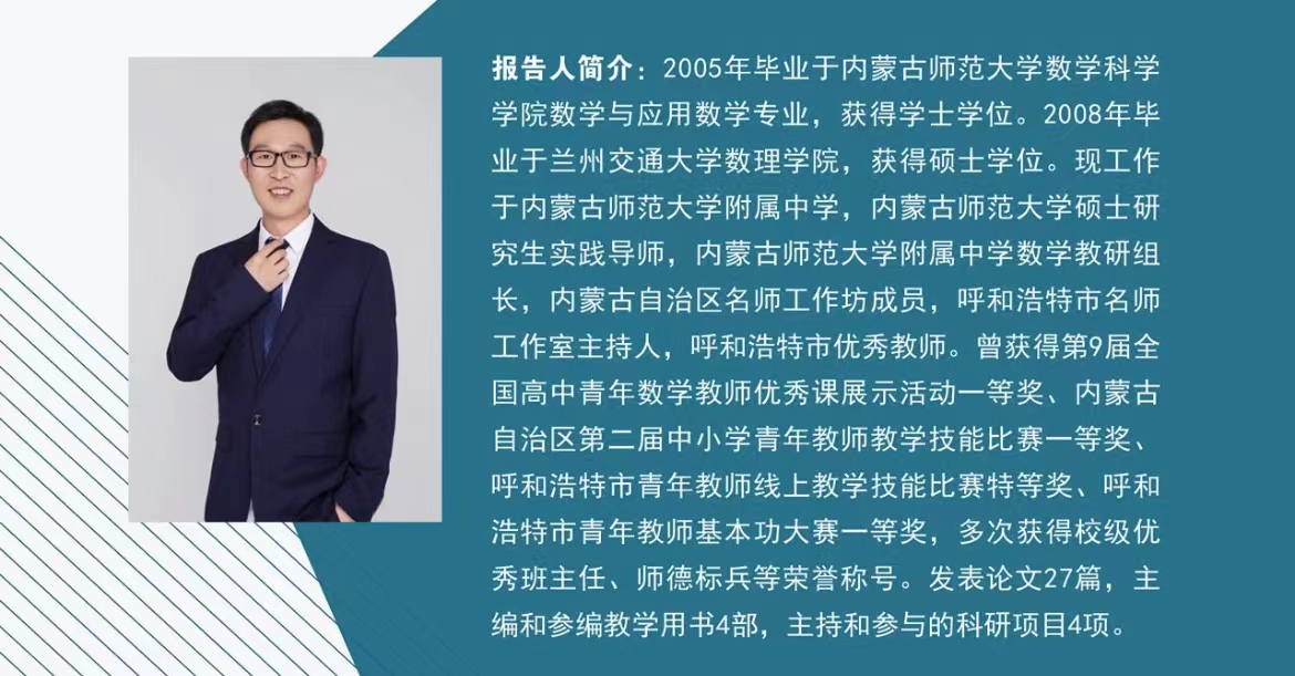 在澳门pg官方电子平台70周年校庆的热烈气氛下,为进一步提升澳门pg官网本科生、研究生教学能力,开拓师范生备课的眼界,以优促优,鼓励澳门pg官网在校生向优秀校友学习请教,由内蒙古自治区应用数学中心联合澳门pg官方电子平台举办的系列讲座——“用艺术的眼光备课”于2022年5月31日(星期二)19:30—22:00在线上开展。