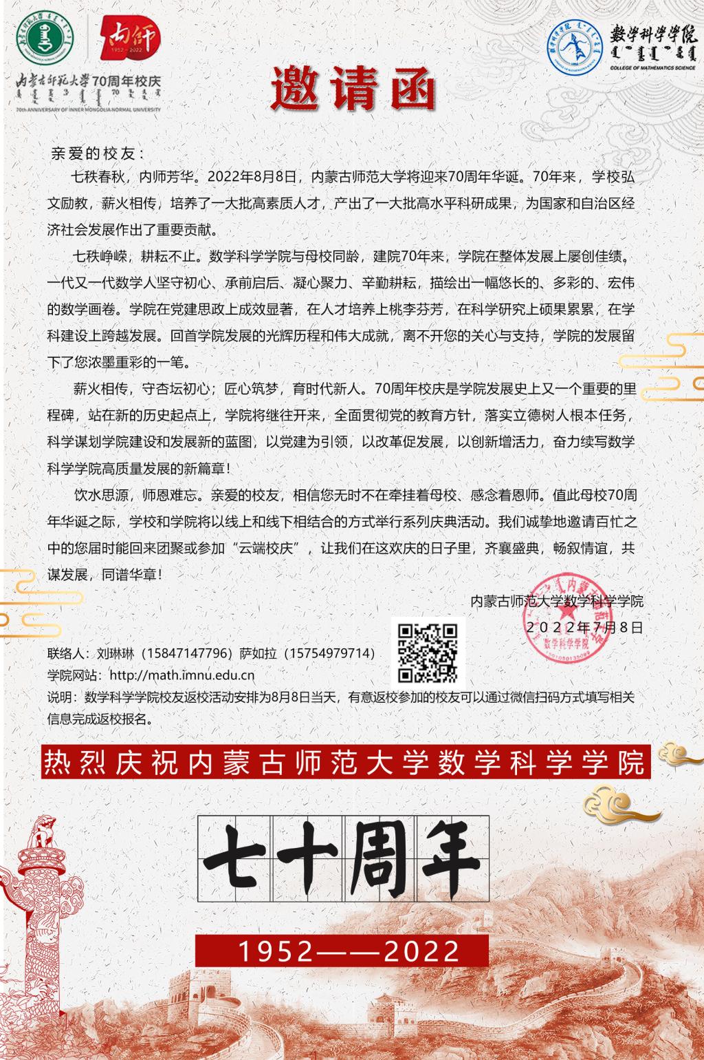 澳门pg官方电子平台70周年校庆活动邀请函
