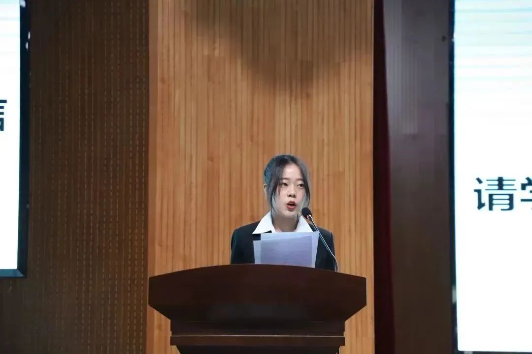 2021级数学与应用数学三班王琪同学作为学生代表发言,认为开展学风教育活动有助于树立和培养良好的学习风气,动员同学们自觉树立“营造优良学风从我做起”的意识,以主人翁的姿态积极参与学院学风建设的各项活动,培养自学能力,学会独立思考,严格遵守学校、学院各项规章制度,共同促进良好学风的形成。