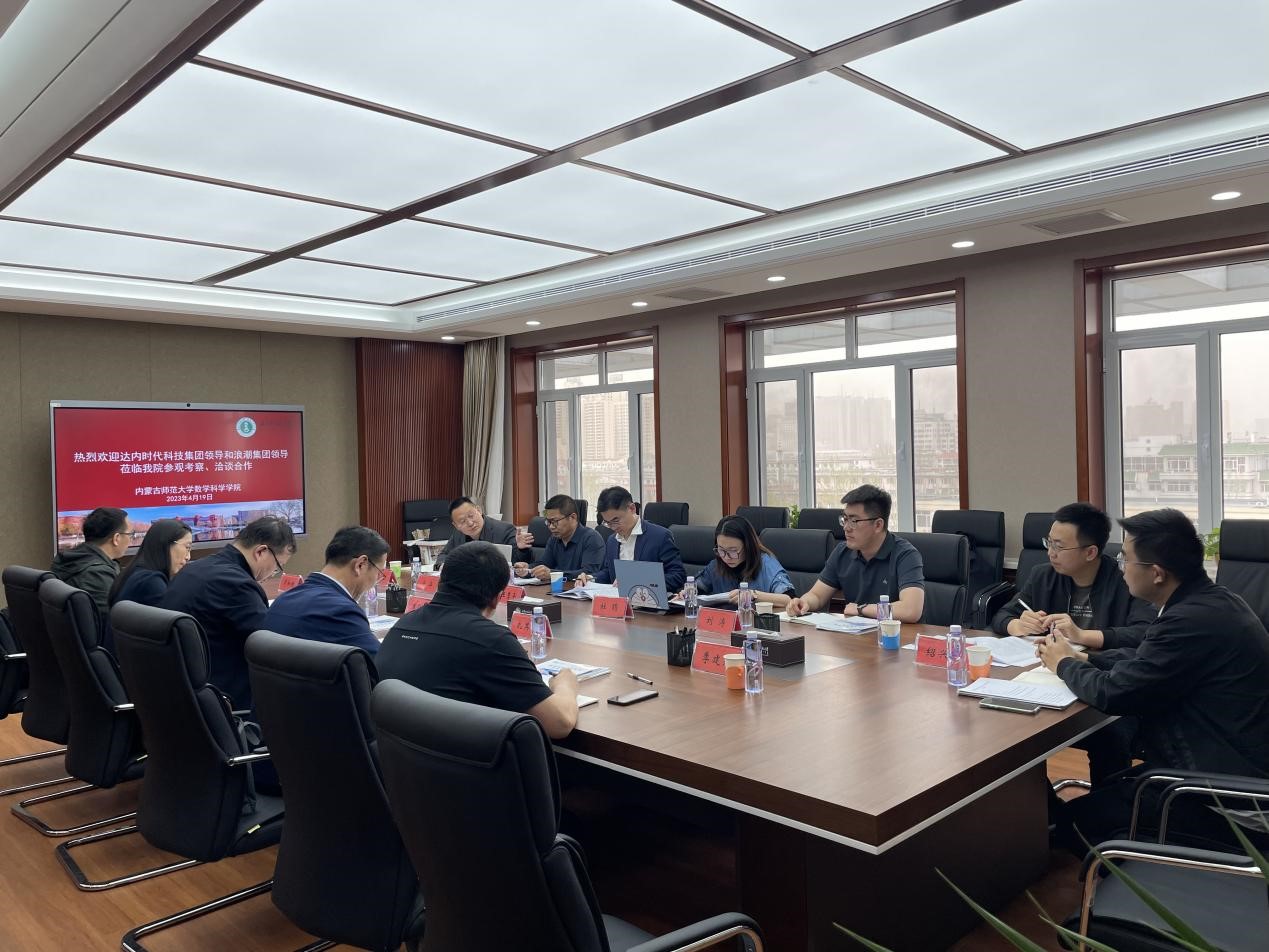 为了进一步加强校企合作共建,深化产学研深度融合,持续推进内蒙古国家应用数学中心和无穷维哈密顿系统及其算法应用教育部重点实验室建设,4月19日,澳门pg官方电子平台邀请达内时代科技集团和浪潮集团相关负责人来校开展合作洽谈。参加洽谈会的有达内时代科技集团安盟总经理一行、浪潮集团产业学院杜娟总经理一行,以及学院领导班子成员和部分教师代表。