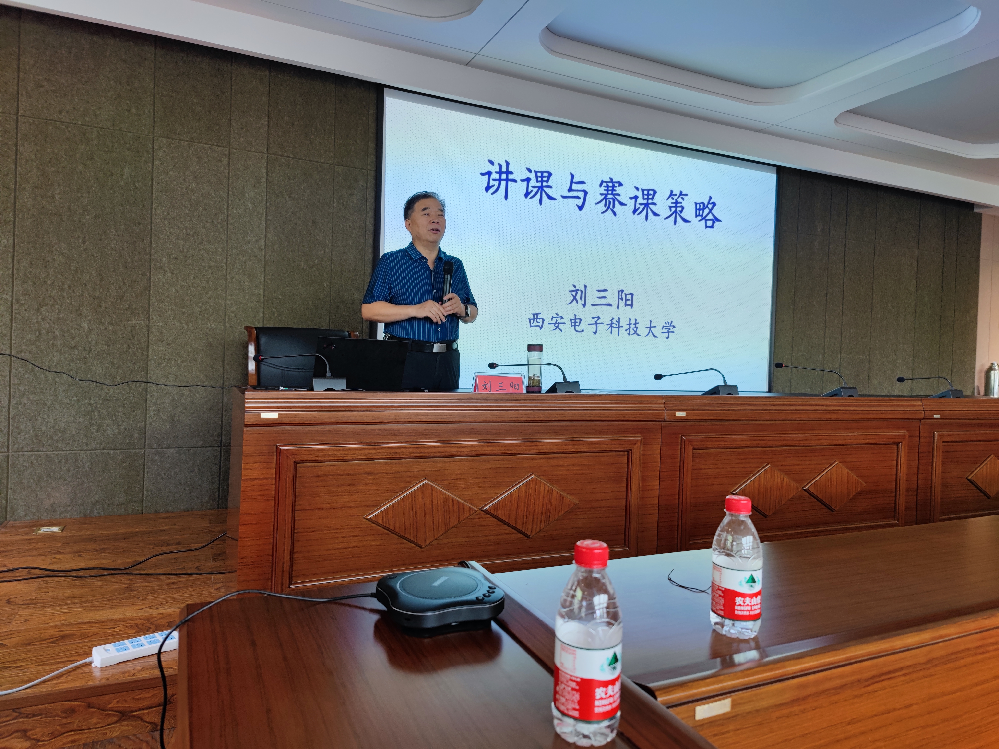 包霞副院长向全体参会师生介绍了刘三阳教授的个人履历与教学科研业绩,并介绍了刘三阳教授本次的讲座主题《讲课与赛课策略》。
