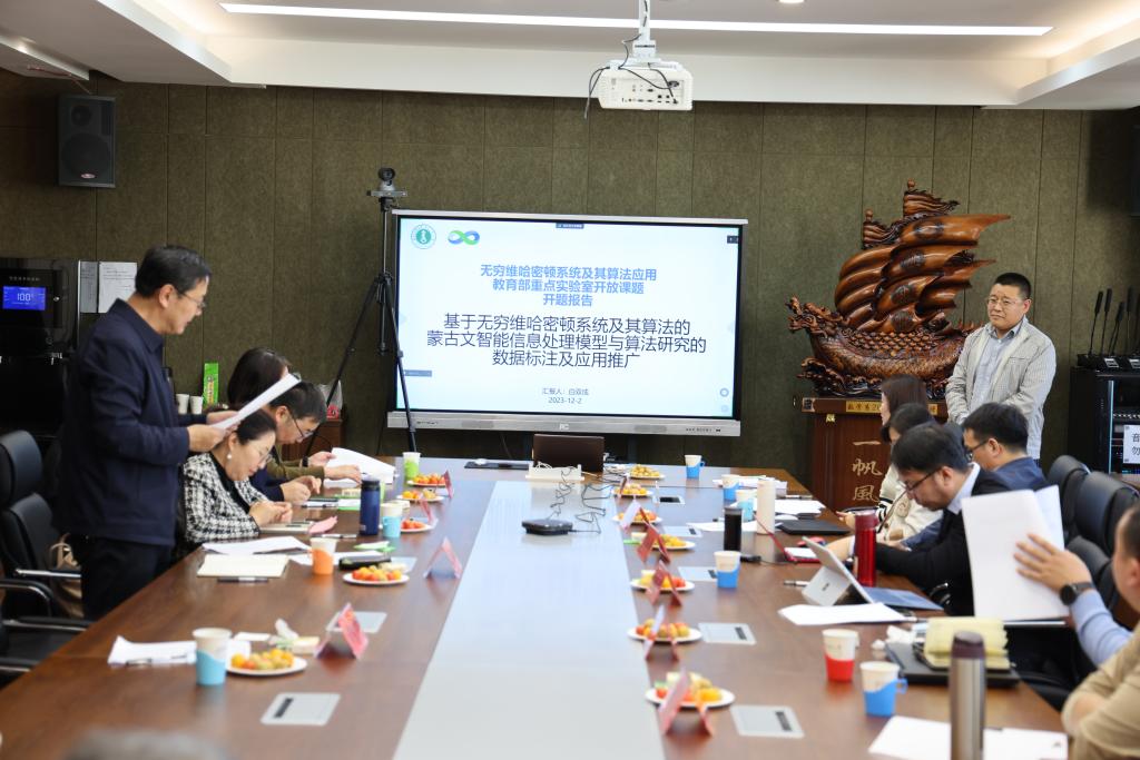 12月2日,无穷维哈密顿系统及其算法应用教育部重点实验室开放课题开题会议在文史楼2号会议室顺利召开。无穷维哈密顿系统及其算法应用教育部重点实验室主任阿拉坦仓教授、澳门pg官方电子平台副校长贾美林、科技处(社科处)处长咏梅、研究生院刘官厅教授及澳门pg官方电子平台党委陈宏研书记、扎其劳院长、包霞副院长出席了本次会议。陕西师范大学陈建芮教授、内蒙古农业大学孙志宏研究员、澳门pg官方电子平台相关学院开放课题负责人及其团队共30余人通过线上线下相结合的方式参加了本次会议。会议由澳门pg官方电子平台科技处(社科处)处长咏梅主持,贾美林副校长致辞。