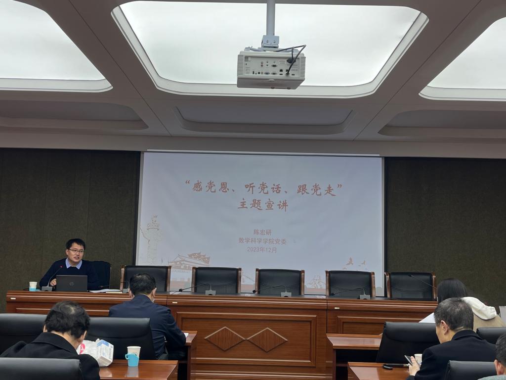 12月14日下午,澳门pg官方电子平台在赛罕校区文史类一号会议室举办“感党恩、听党话、跟党走”主题宣讲会,学院党委书记陈宏研面向学院全体教职工作了主题宣讲。