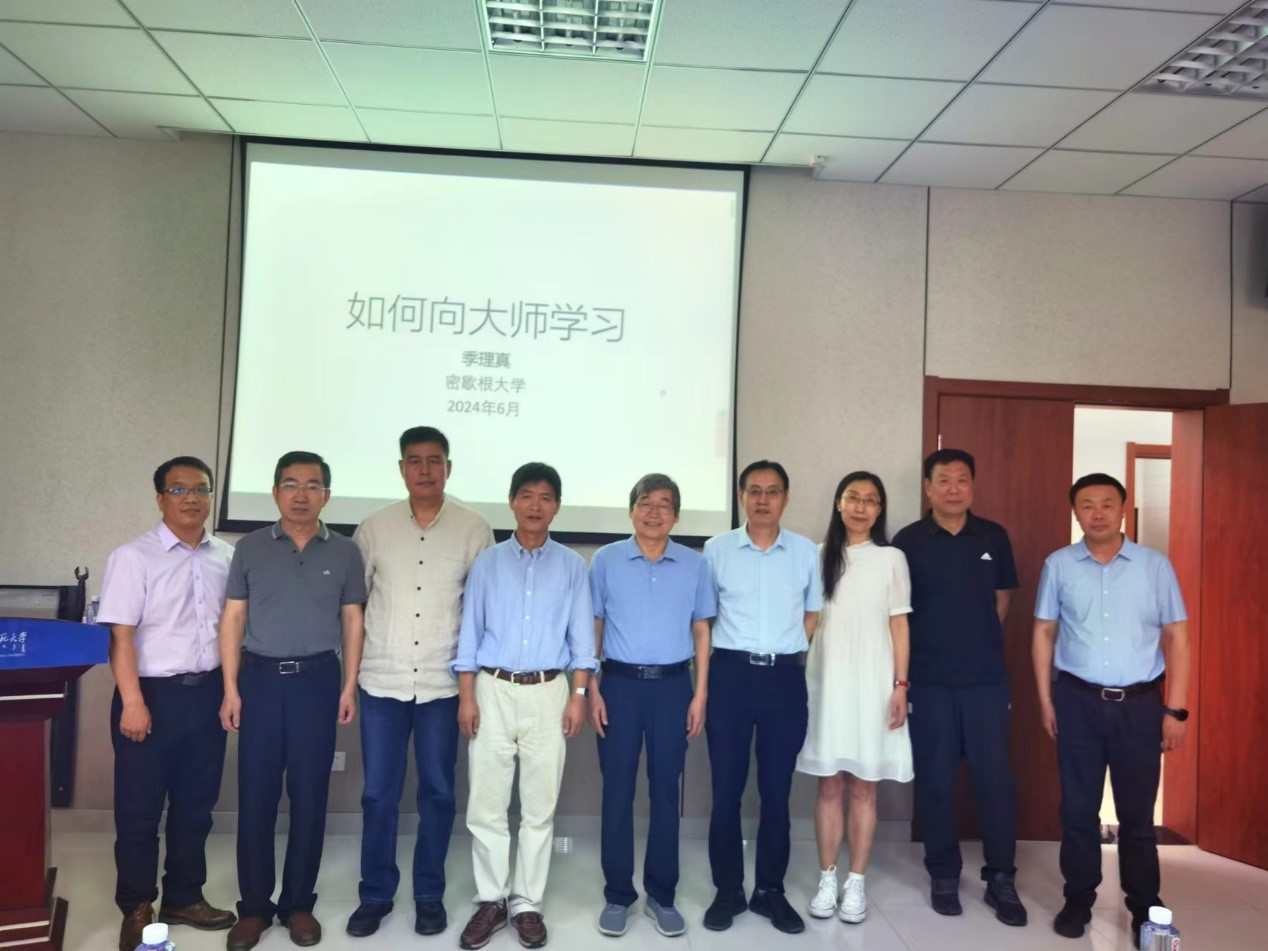 6月13日下午,无穷维哈密顿系统及其算法应用教育部重点实验室、教育部数学与应用数学专业虚拟教研室、内蒙古应用数学中心系列讲座在我校赛罕校区文史楼339学术报告厅举行。著名华人数学家、美国密西根大学教授、清华大学丘成桐数学科学中心兼职教授季理真教授应邀作了题为“如何向大师学习”的学术报告。我校原党委书记、内蒙古应用数学中心主任阿拉坦仓教授,科学技术史研究院郭世荣教授、代钦教授和原研究生院院长刘官厅教授及澳门pg官网师生90余人聆听了本次报告。报告由包霞副院长主持。