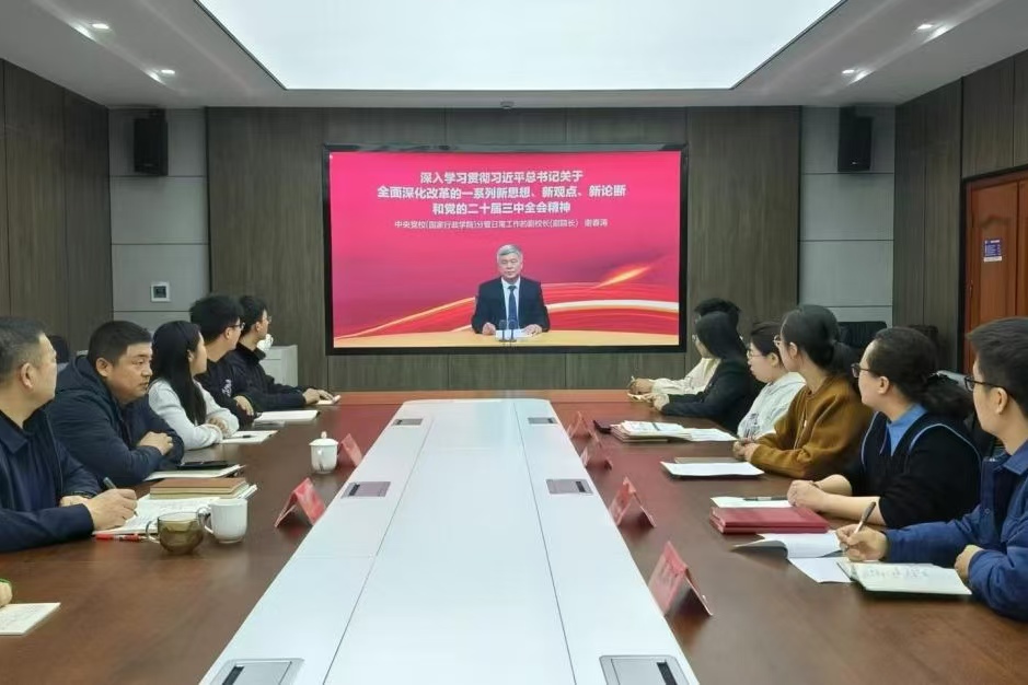 会议最后,与会人员共同观看学习了由中央党校谢春涛教授主讲的“深入学习贯彻习近平总书记关于全面深化改革的一系列新思想、新观点、新论断和党的二十届三中全会精神”专题讲座。