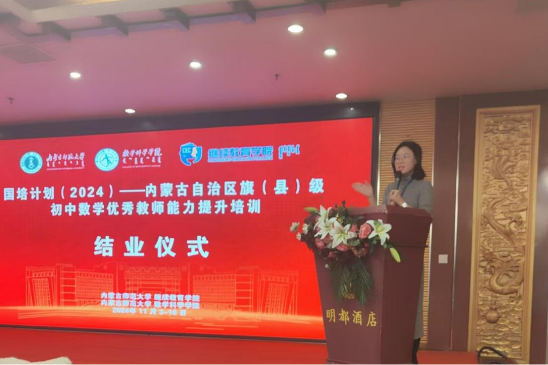 2024年11月15日,“国培计划(2024)——内蒙古自治区旗(县)级初中数学优秀教师能力提升”培训在山东省淄博市圆满落幕。本次培训由澳门pg官方电子平台继续教育学院主办、澳门pg官方电子平台承办,学员是来自全区各盟市选派来的50位旗(县)级初中数学优秀教师,旨在为各盟市教科研质量的提高注入新动力。培训为期两周:在澳门pg官方电子平台集中研修1周,在山东省淄博高新区实验中学跟岗实践1周。培训班班主任及全体培训学员出席了结业仪式,仪式由郑佳璇老师主持。