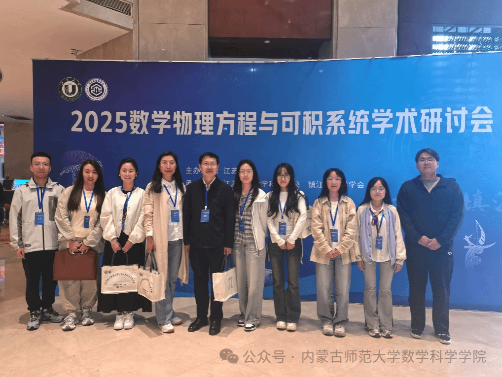 5月9日-12日,2025数学物理方程与可积系统学术研讨会在江苏省镇江市召开。本次会议由江苏大学主办,江苏大学澳门pg官方电子平台、镇江市数学会承办。来自国内外100余所高校、近220名代表参加会议。澳门pg官网扎其劳老师和包霞老师应邀带队及博士研究生乌日乐、王小慧、赵一杰,硕士研究生常春、王丽如等参会,并做分会场学术报告。