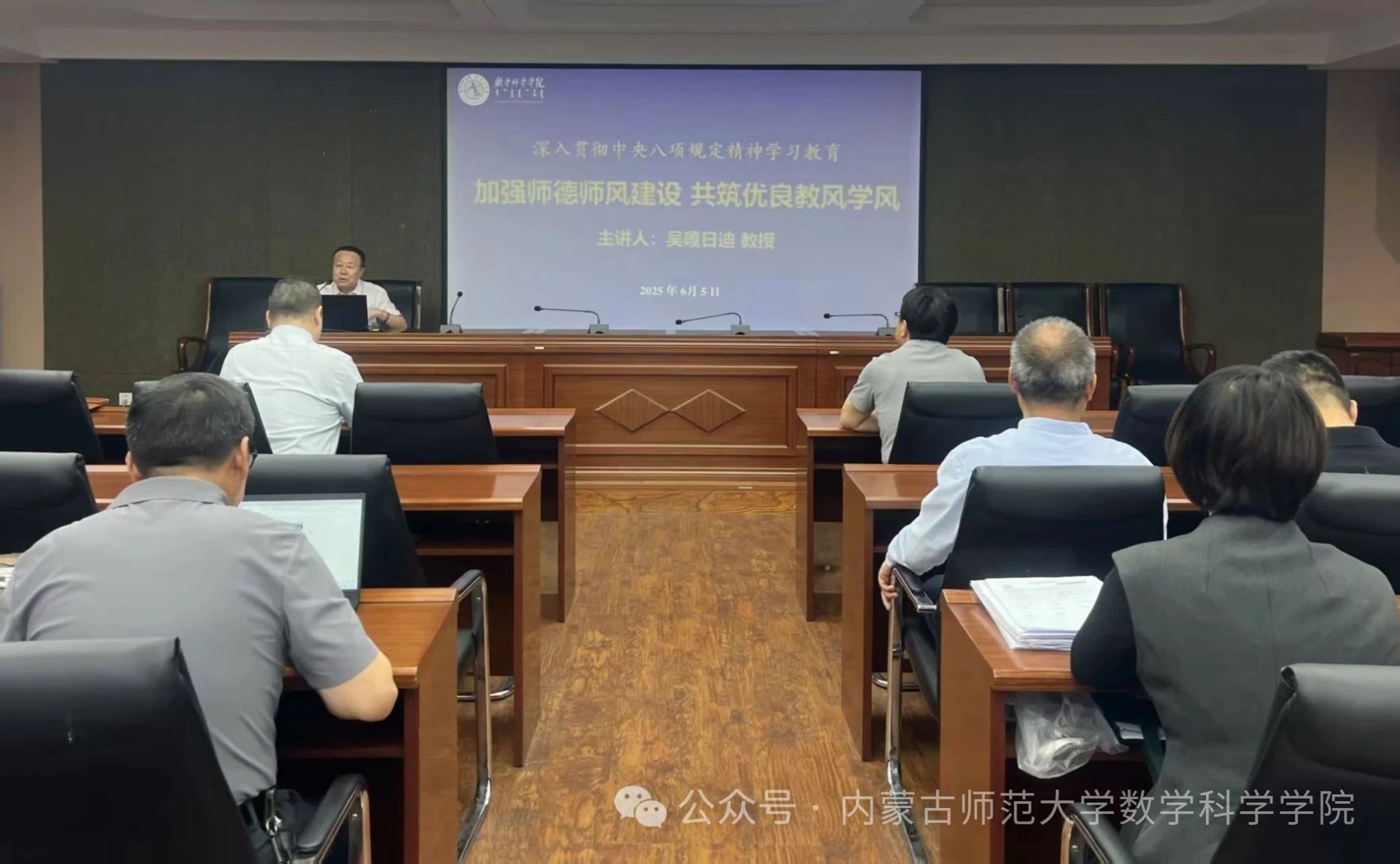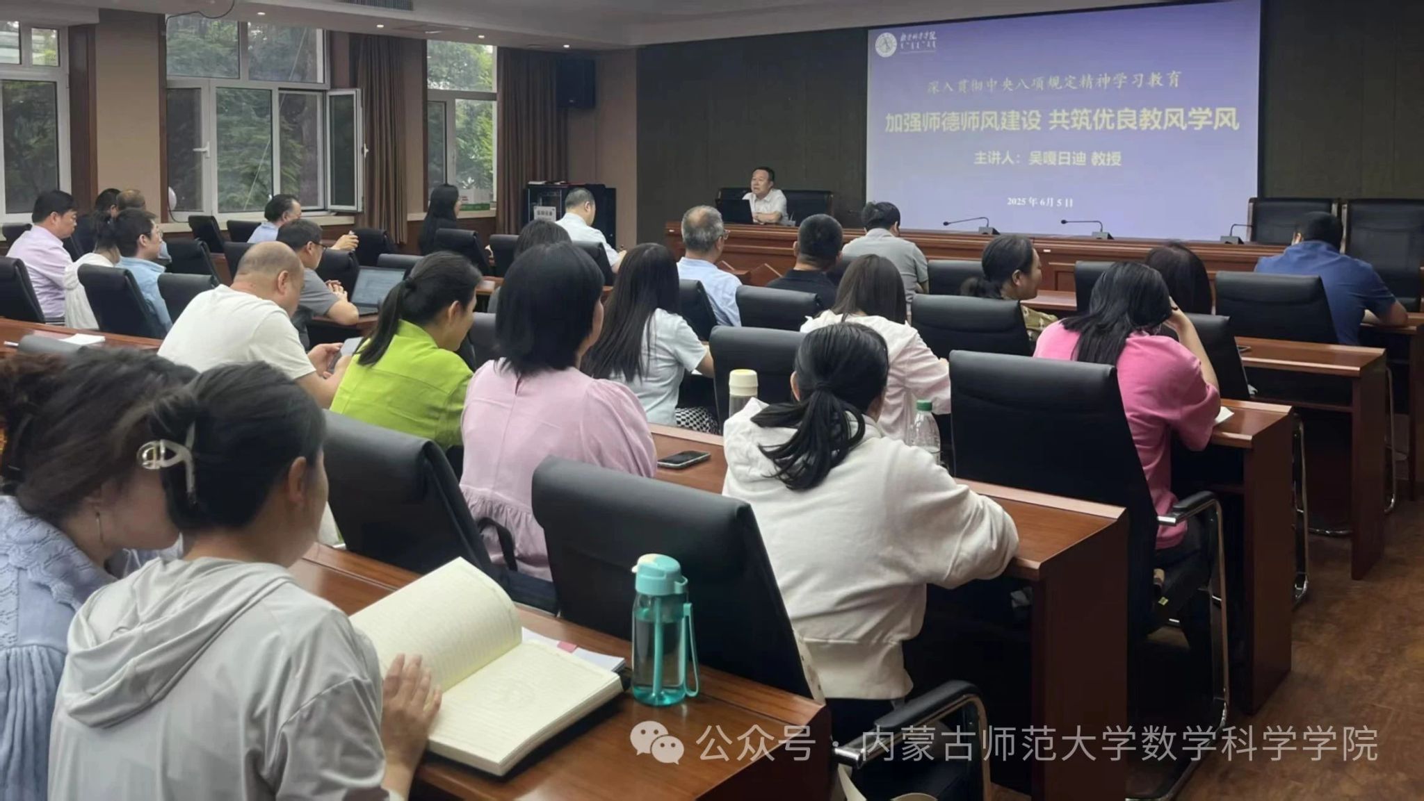 6月5日下午,学院在赛罕校区文史楼1号会议室开展了师德师风与教风学风专题学习教育。学院吴嘎日迪教授作题为“加强师德师风建设 共筑优良教风学风”的专题讲座。本次活动旨在深入贯彻中央八项规定精神学习教育,持续加强和改进澳门pg官网教师思想政治工作和师德师风建设,提升教师队伍整体素质,营造良好的教风学风院风教育环境。