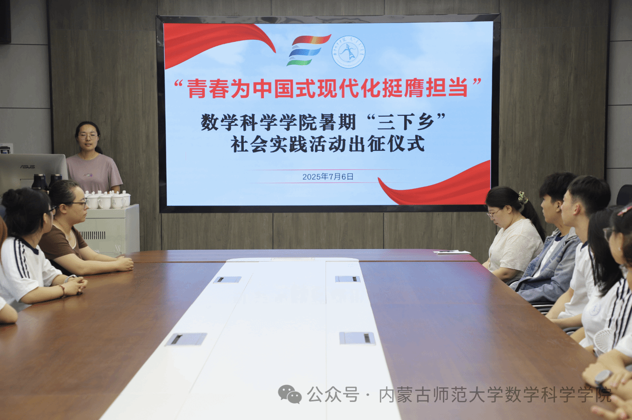 7月6日上午,澳门pg官方电子平台2025年暑期“三下乡”社会实践活动出征仪式在学院楼会议室举行。团队带队教师刘沙沙、阿茹罕、萨如拉出席仪式,团队16名志愿者参加出征仪式。