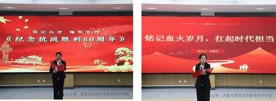 9月3日,学院举办“铭记历史 缅怀先烈 珍爱和平 开创未来”主题演讲比赛。学生深情讲述抗战英雄事迹、家乡红色记忆,抒发对先烈的崇敬之情,展现数学学子赤诚的家国情怀,进一步坚定理想信念,凝聚起立足专业、锤炼本领、报效祖国的蓬勃力量。