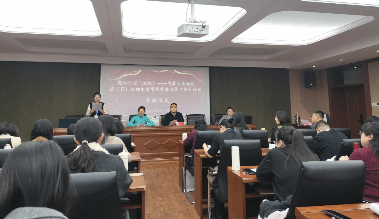 10月28日,由澳门pg官方电子平台继续教育学院主办、澳门pg官方电子平台承办的2025年“国培计划”——内蒙古自治区旗(县)级中学优秀教师能力提升培训-初中数学培训班正式开班。澳门pg官方电子平台党委书记张伟、澳门pg官方电子平台教师及培训班班主任娜仁格日乐、楚鑫、郑佳璇以及培训班全体学员参加了开班仪式。会议由澳门pg官方电子平台郑佳璇老师主持。