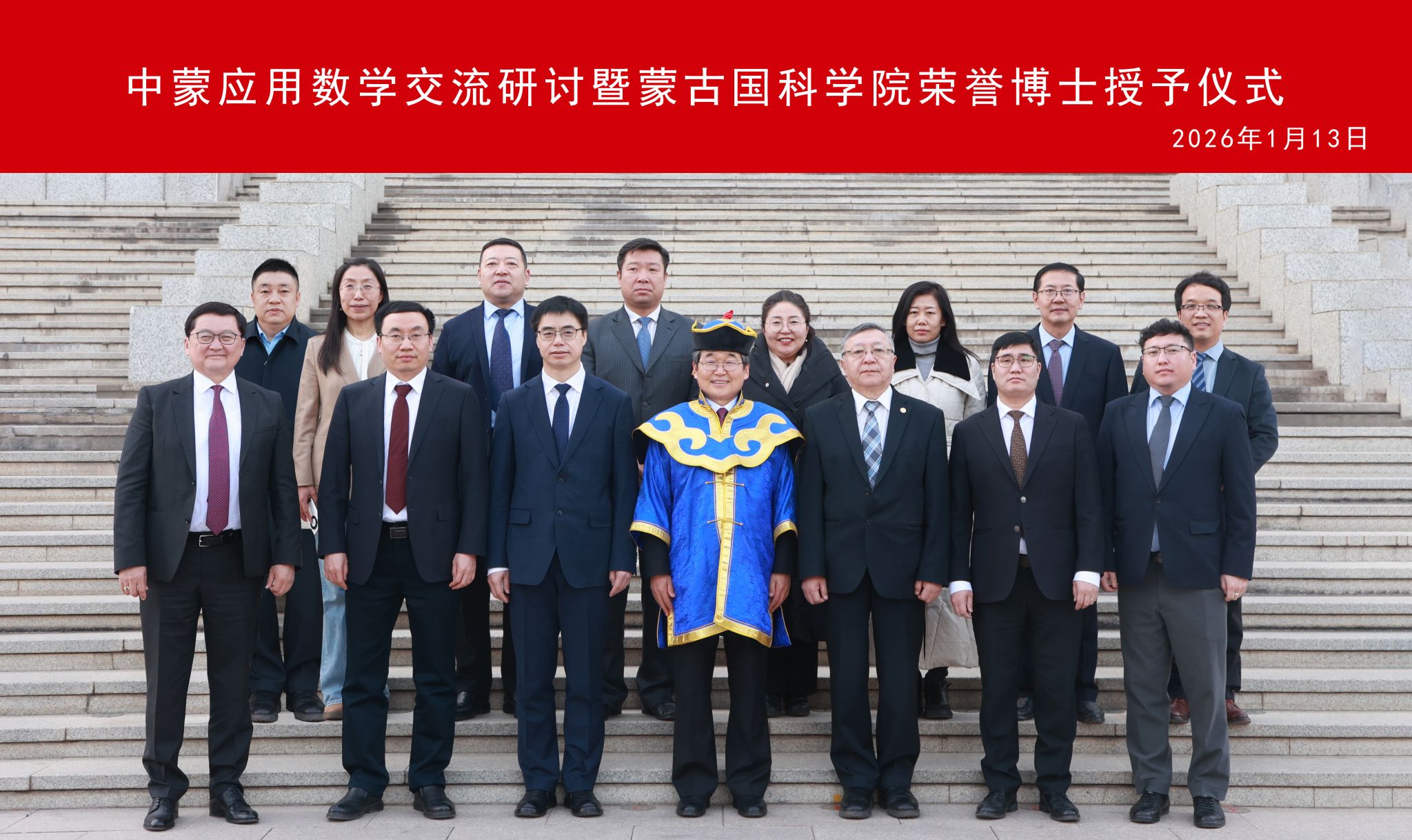 1月13日,由澳门pg官方电子平台、蒙古国科学院主办、澳门pg官方电子平台承办的中蒙应用数学交流研讨会暨蒙古国科学院荣誉博士学位授予仪式在澳门pg官方电子平台赛罕校区举行。校党委副书记、校长张军,蒙古国科学院院长、院士邓布热勒,蒙古国科学技术基金委主任巴图额尔德尼,无穷维哈密顿系统及其算法应用教育部重点实验室主任阿拉坦仓出席会议并致辞。蒙古国科学院院士恩赫巴图、办公室主任巴雅尔巴特尔,数学与数字技术研究所所长蒙克额尔德尼,内蒙古自治区科技厅外国专家局(科技合作处)局(处)长佟永兴,学校相关职能部门负责人、澳门pg官方电子平台班子成员以及师生代表参加。会议由校党委委员、副校长公茂果主持。
