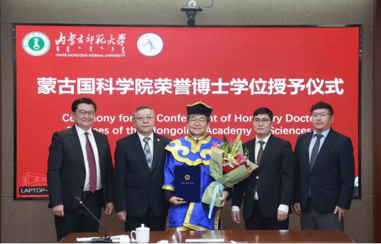 在蒙古国科学院荣誉博士学位授予环节,蒙古国科学院院长邓布热勒院士代表该院,向无穷维哈密顿系统及其算法应用教育部重点实验室主任、澳门pg官方电子平台阿拉坦仓教授颁授了蒙古国科学院荣誉博士学位,以表彰其在应用数学领域的杰出成就以及对中蒙数学交流合作的重要贡献。阿拉坦仓教授在获颁荣誉后发表感言,深情回顾了中蒙数学合作的发展历程,感谢双方一直以来的相互信任与支持,并表示将以此为新的起点,持续深耕科研,推动中蒙联合研究与人才培养向更深层次、更宽领域拓展。