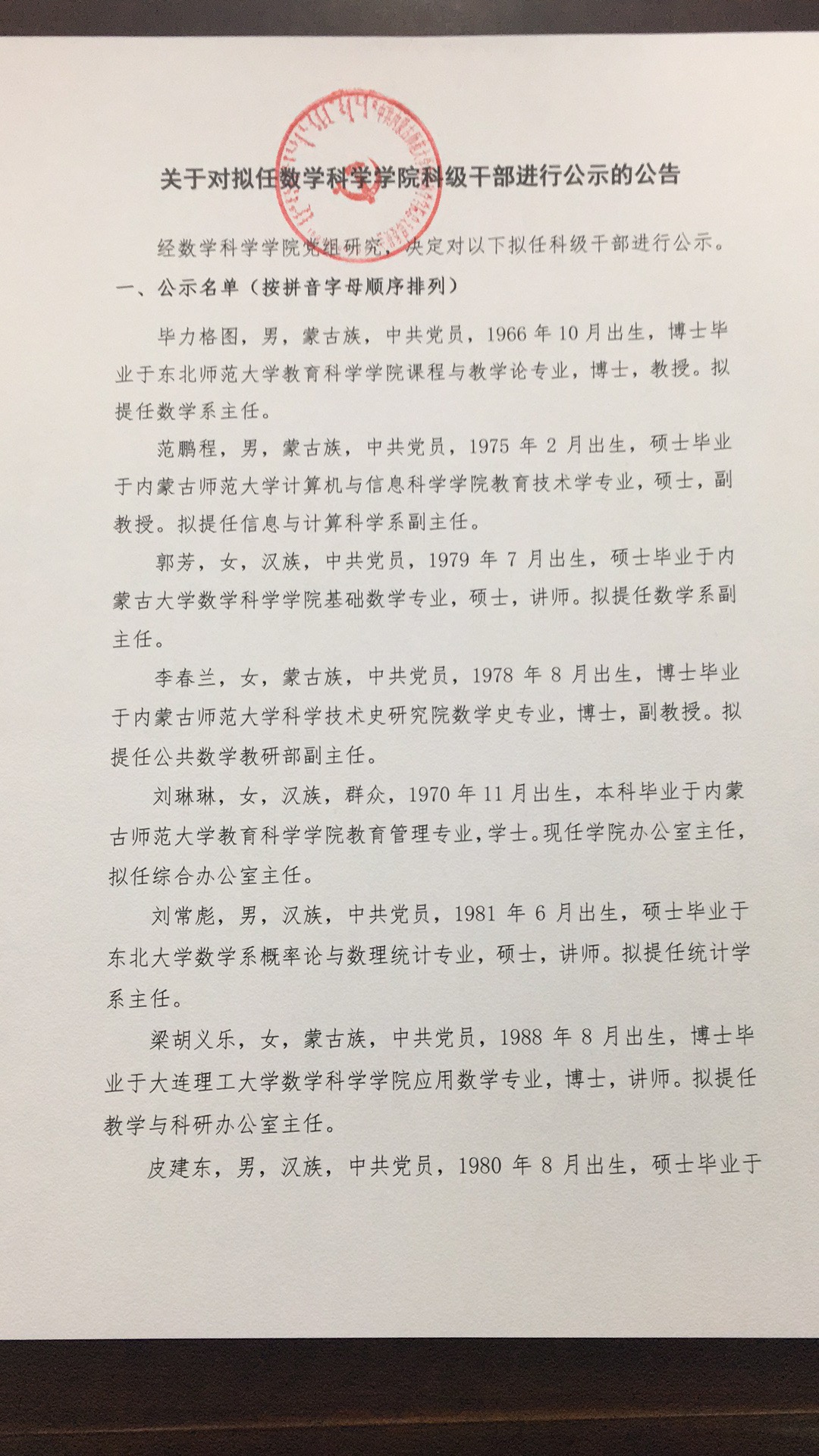 关于对拟任澳门pg官方电子平台科级干部进行公示的公告