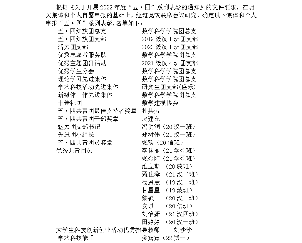 澳门pg官方电子平台2022年度“五·四”系列表彰推荐名单公示