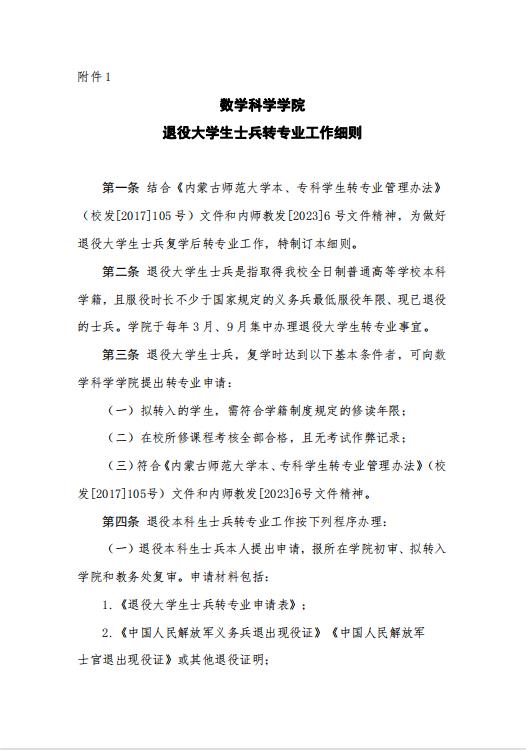 附件1 《澳门pg官方电子平台退役大学生士兵转专业工作细则》