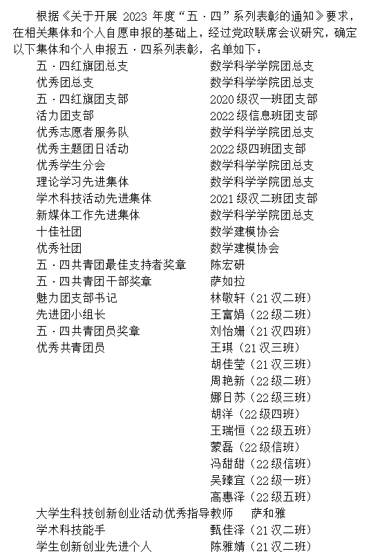 澳门pg官方电子平台2023年度“五·四”系列表彰推荐名单公示