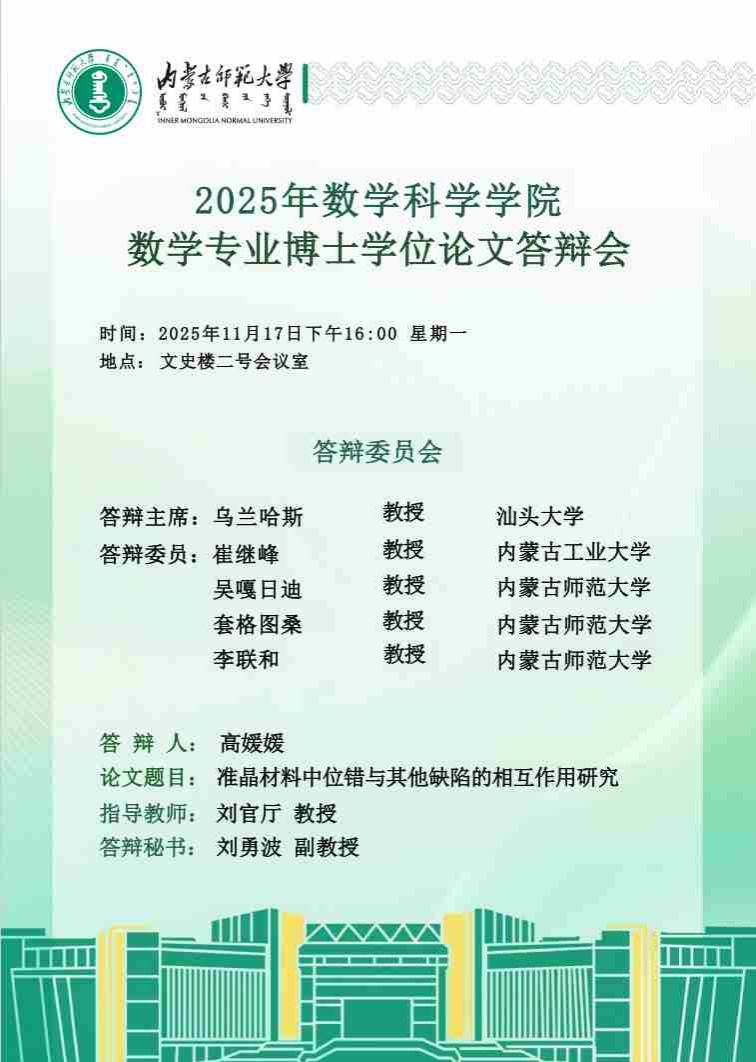 2025年澳门pg官方电子平台数学专业博士学位论文答辩会(二)