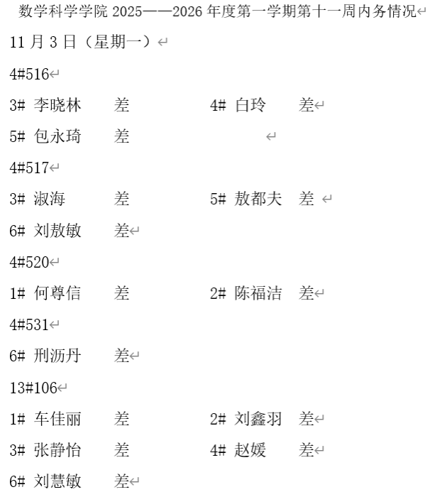 澳门pg官方电子平台2025——2026年度第一学期第十一周内务情况