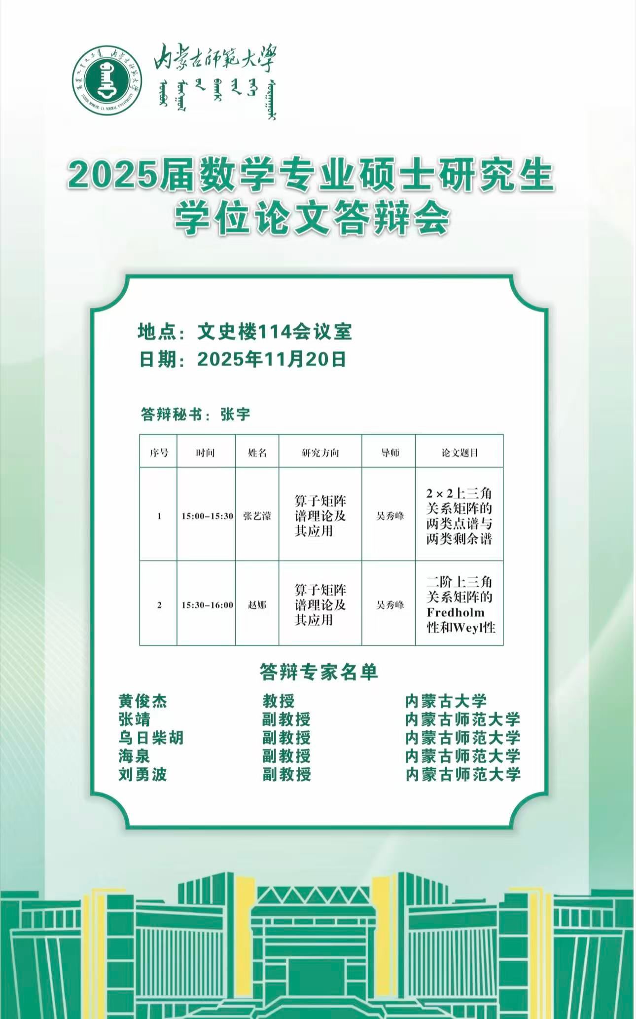 2025届数学专业硕士研究生学位论文答辩会